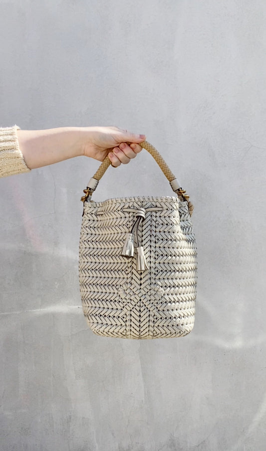 Fournisseur :"Neeson" White Leather Bucket Bag with Knotted HandlePrix habituel $698.00 CADPrix habituelPrix unitaire / parPrix promotionnel $698.00 CADÉpuisé -