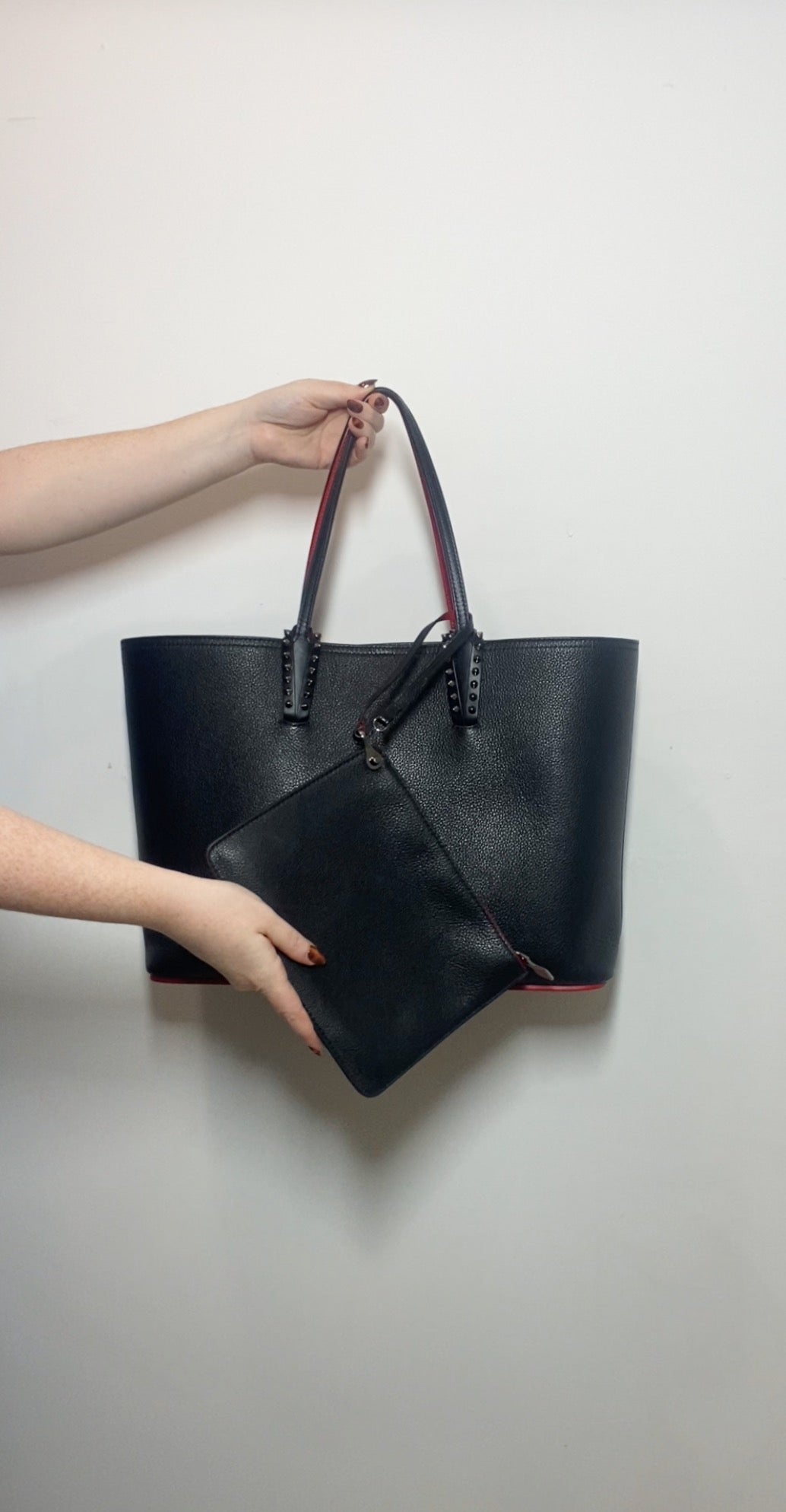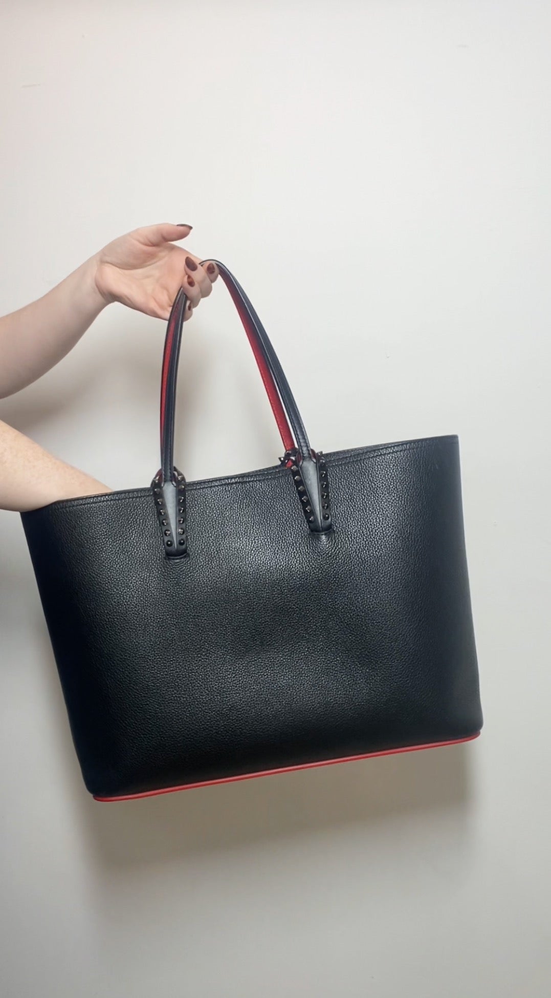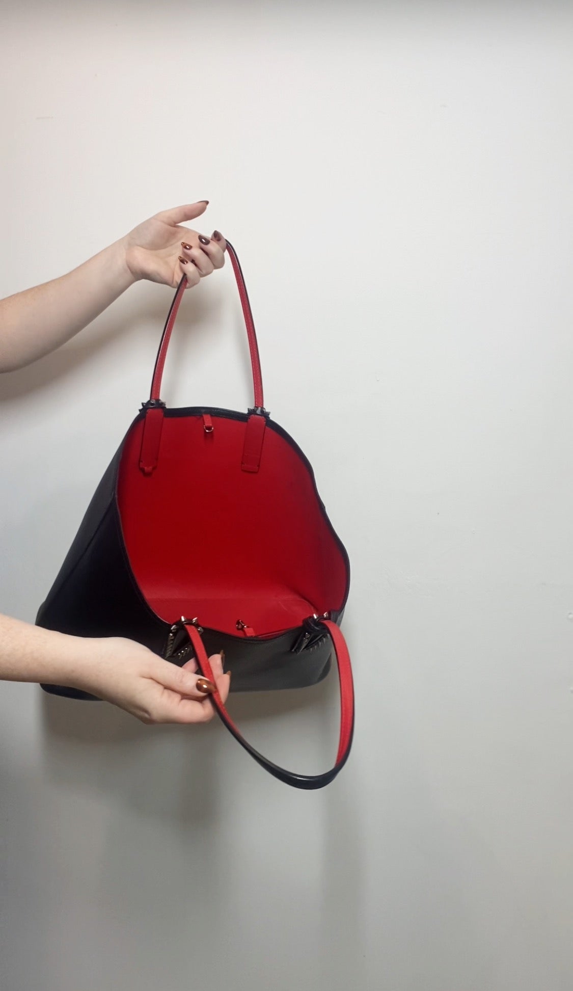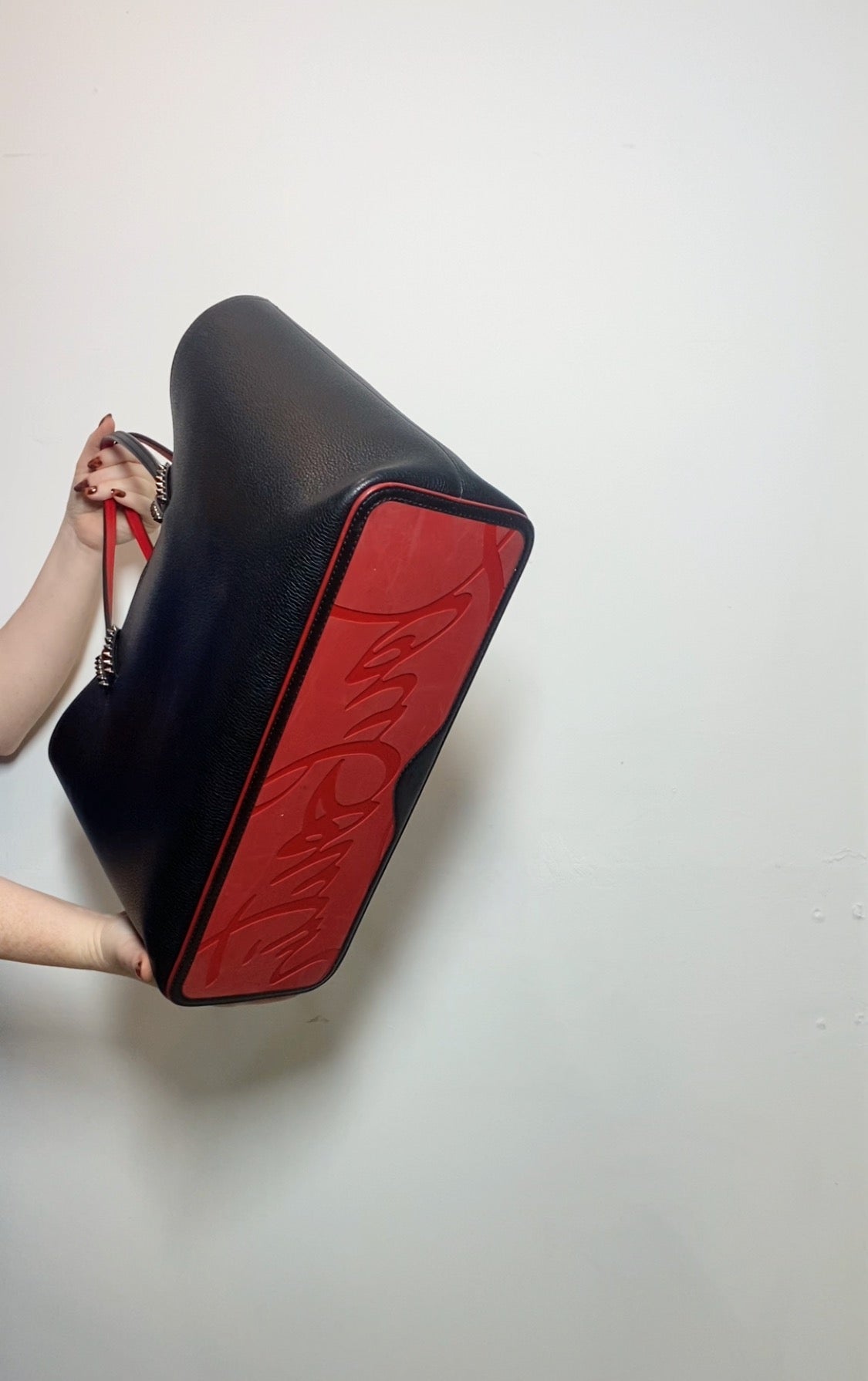 This preloved “Cabata” black leather tote-style bag from Christian Louboutin is the perfect answer. The beautiful black pebble leather bag is in mint condition & features a sleek & simple design that will fit literally everything you need including a laptop if desired. The straps feature silver studs around the bottom giving that tiny bit of edge to make this piece a little more funky & interesting. The interior of the straps as well as the interior of the bag is done in the iconic Louboutin red & comes with an interior pouch for extra storage.