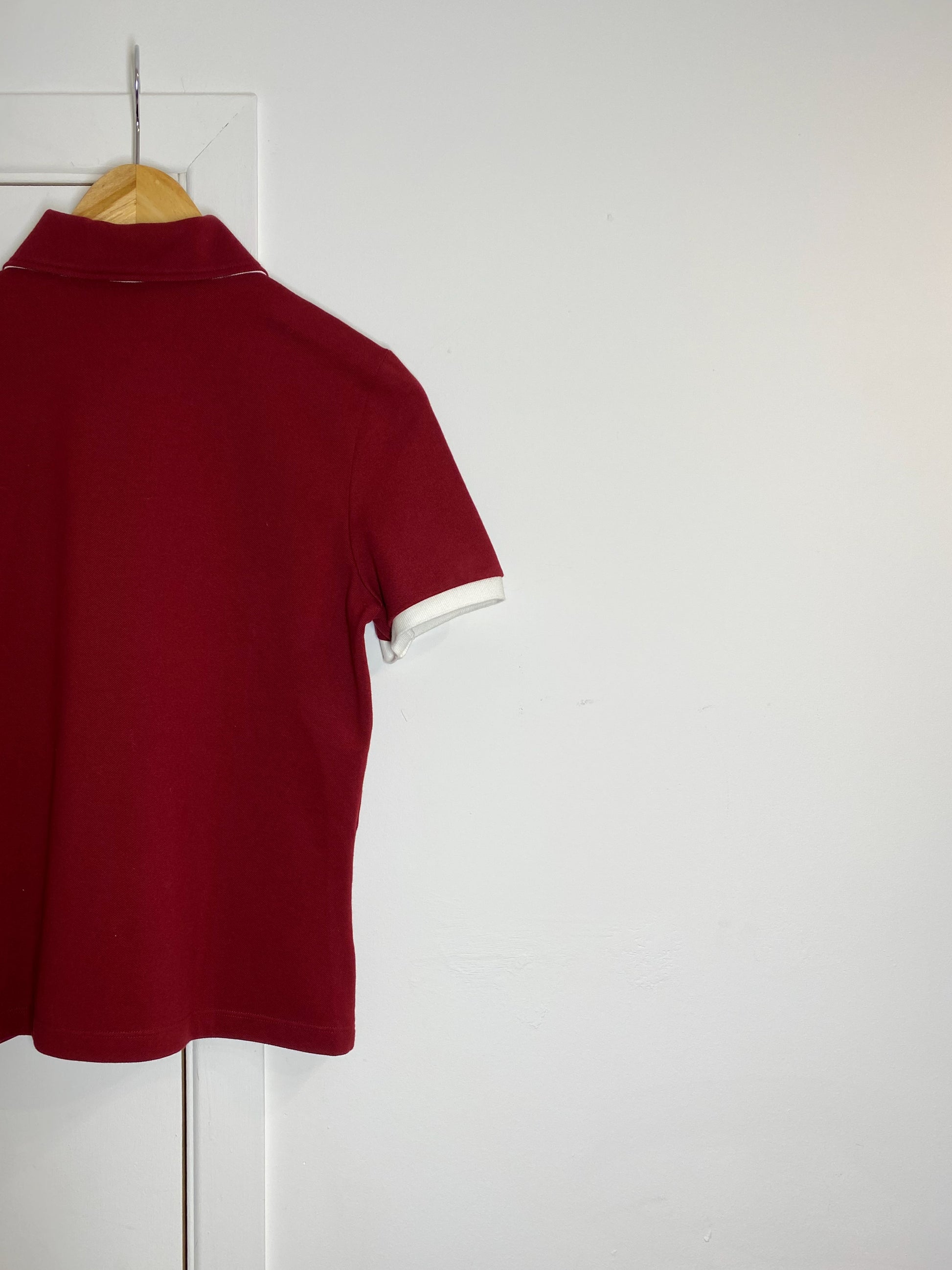 Say hello to this gorgeous preloved burgundy polo shirt from the Lacoste x Sporty & Rich collab.