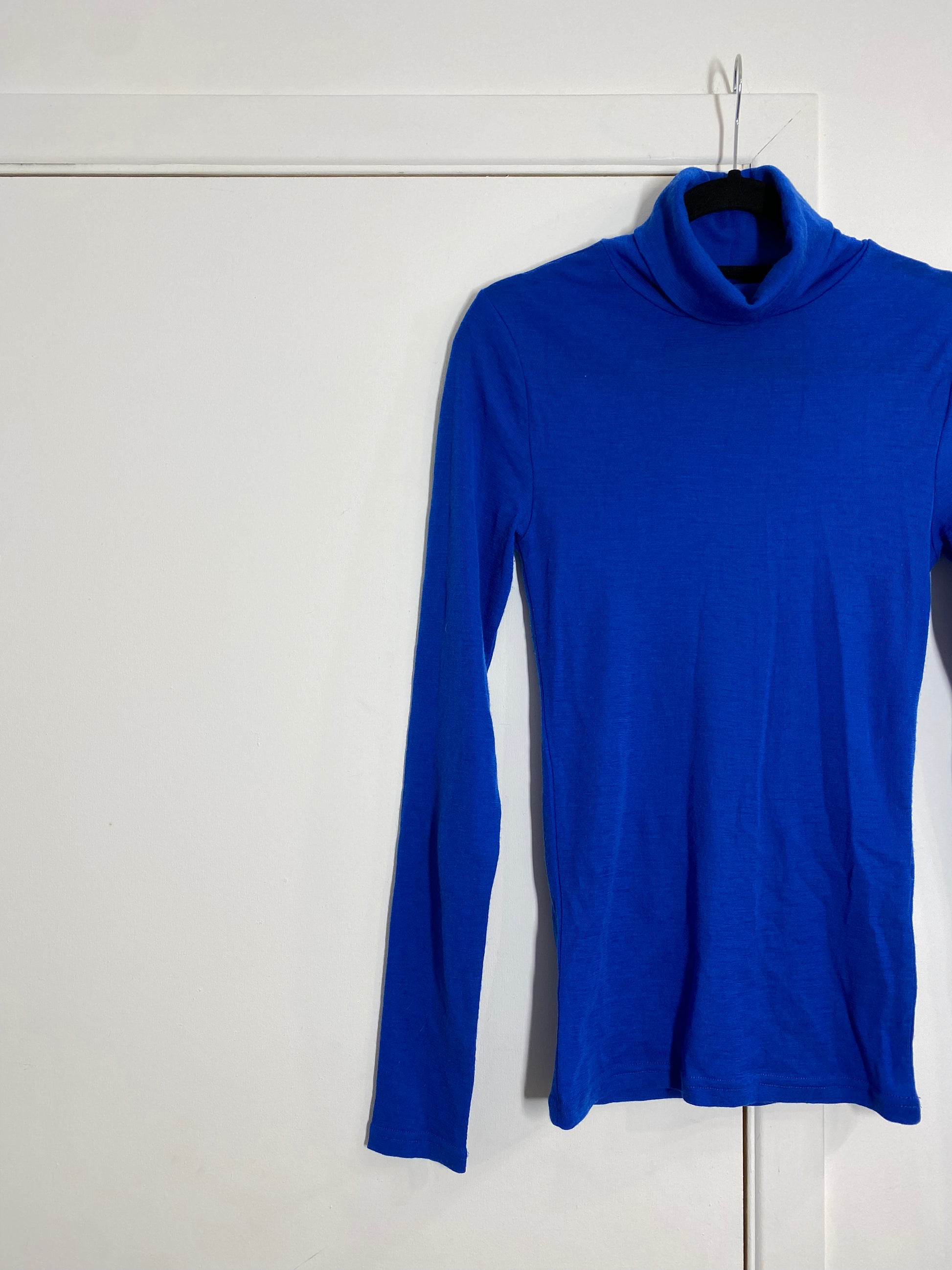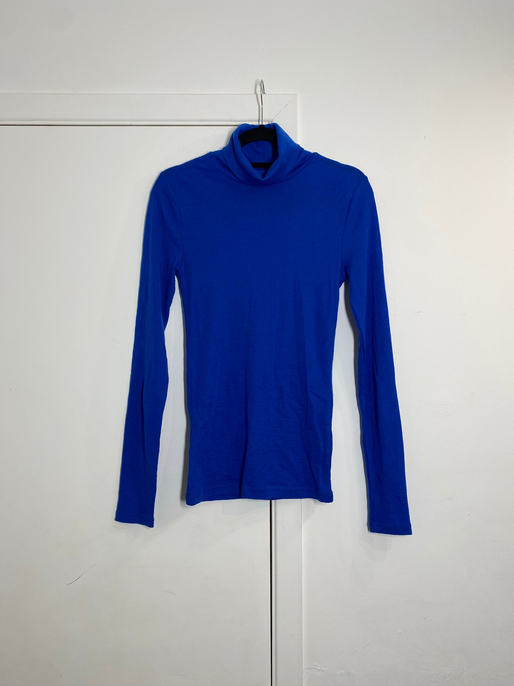 This preloved cobalt blue turtleneck from Minimium is the perfect piece for year round wear. The colour adds a beautiful bright pop to any look, & since it's a very lightweight woven cotton, this piece is perfect with layers on top in the cooler weather & also looks amazing on its own with jeans or maxi skirts.