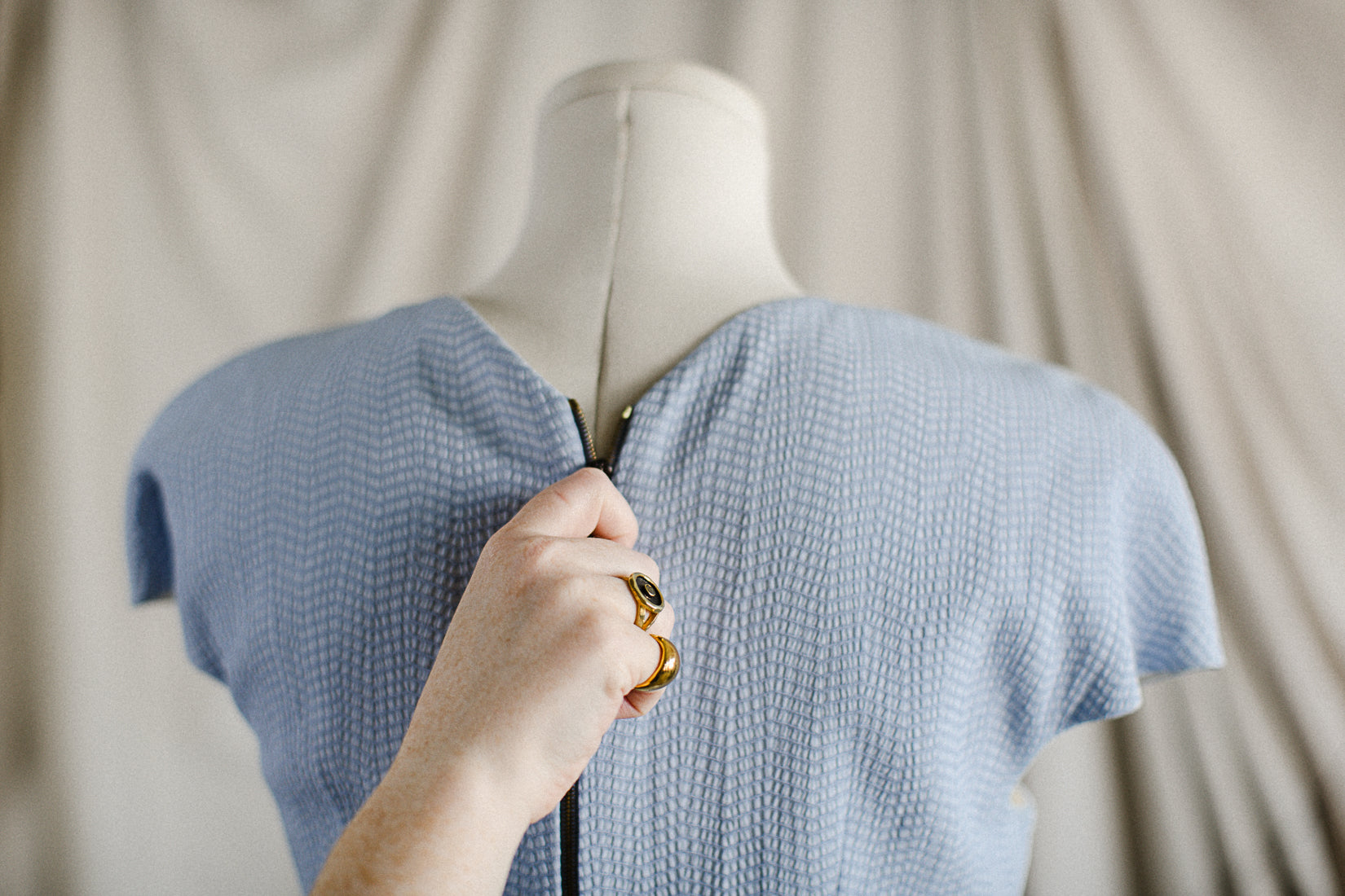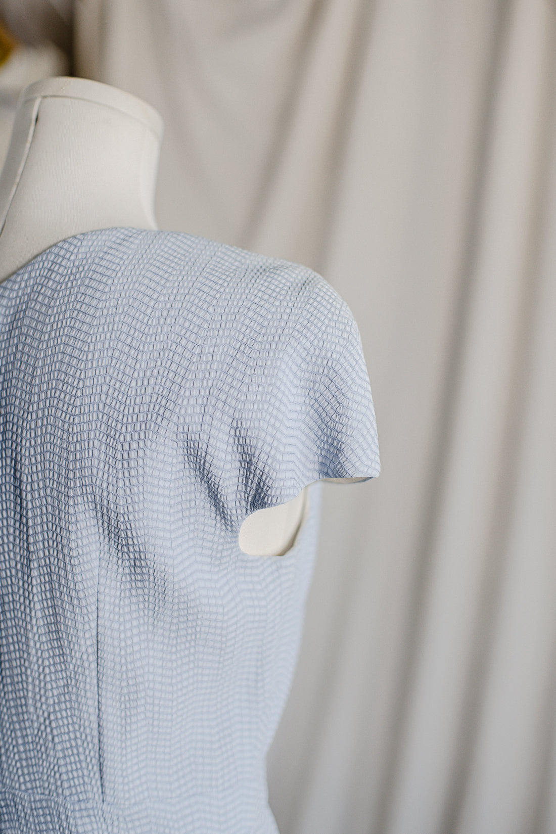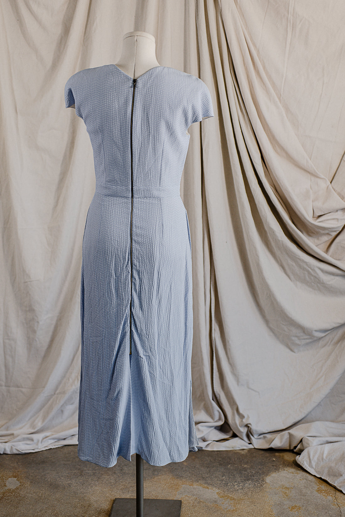 From the Spring 2017 Collection, this pale blue "Elliot" textured dress by Roland Mouret features tonal stitching throughout, an asymmetrical neckline & zip closure at the back. The cut of this gorgeous dress hugs the figure so delicately that it will feel like it is made for you.