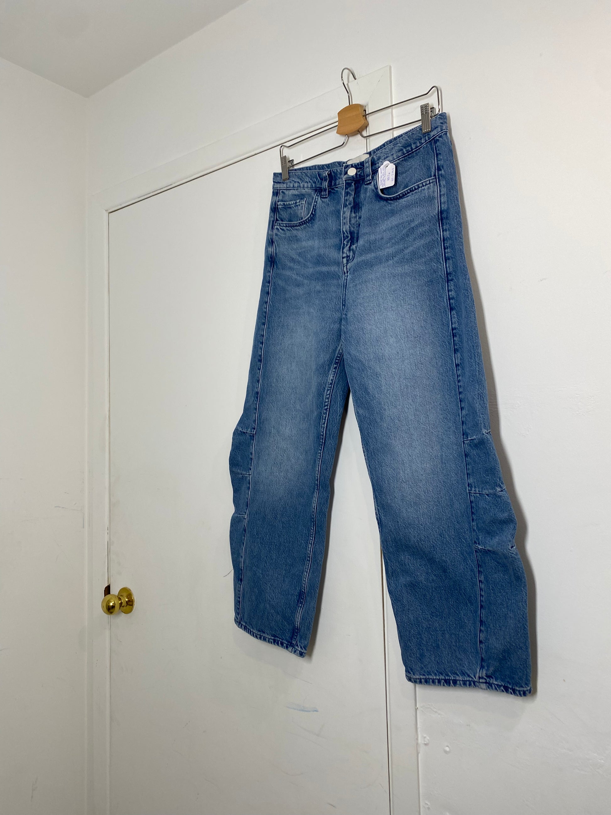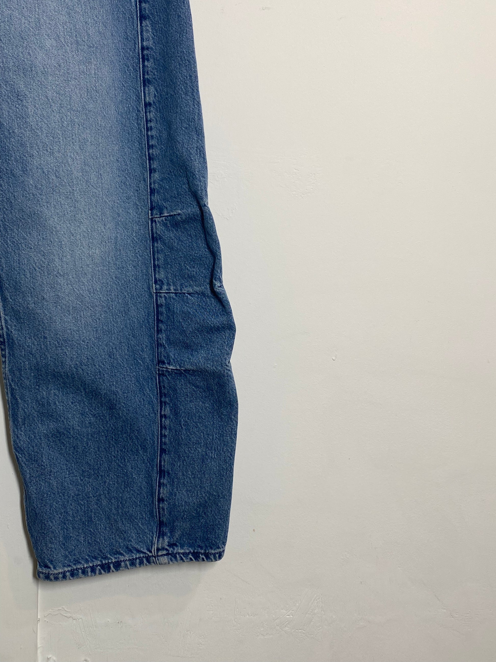 Literally one of the coolest pair of barrel jeans we've seen. These beauties from Triarchy are a perfect blue mid-wash, have an amazing shape & structure to them & look great on.