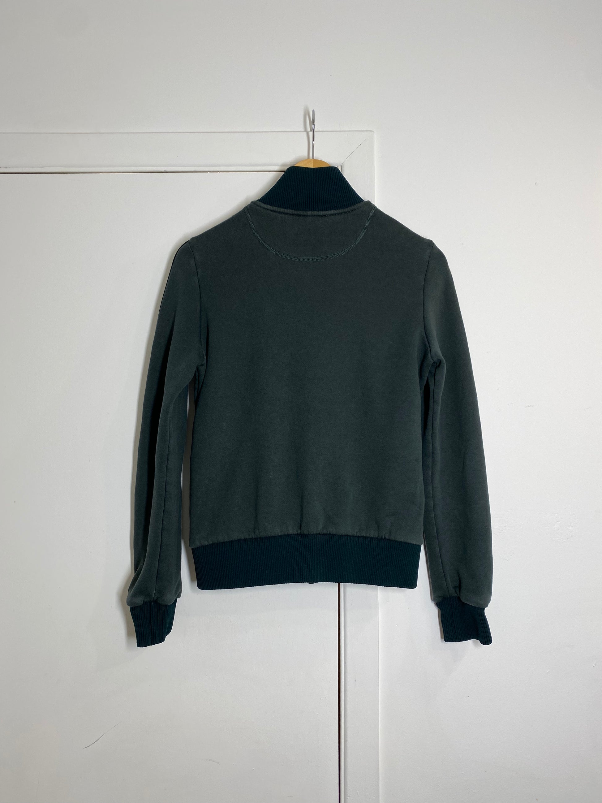 This preloved forest green zip up sweatshirt is the perfect combo of cozy-meets-cool.