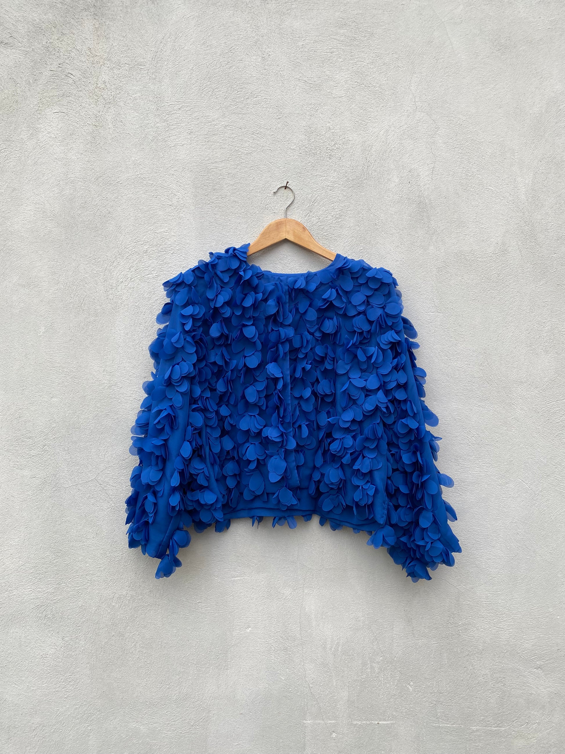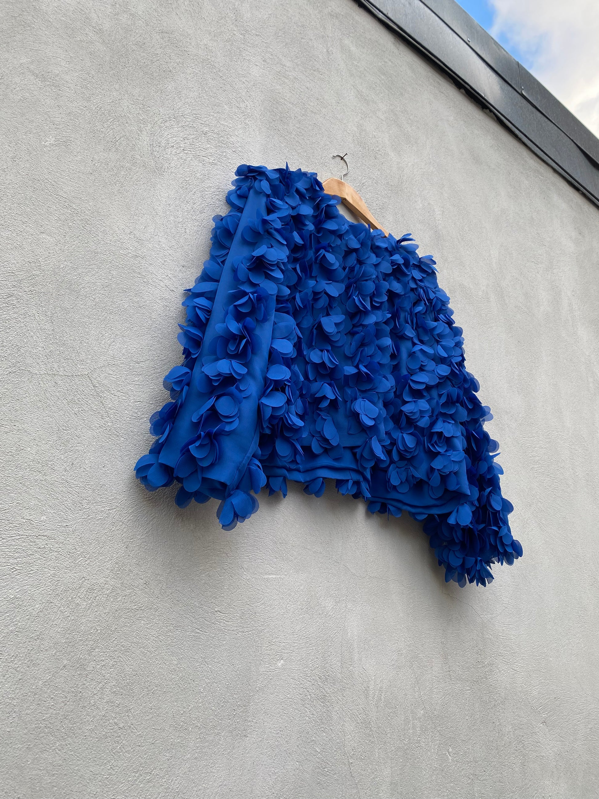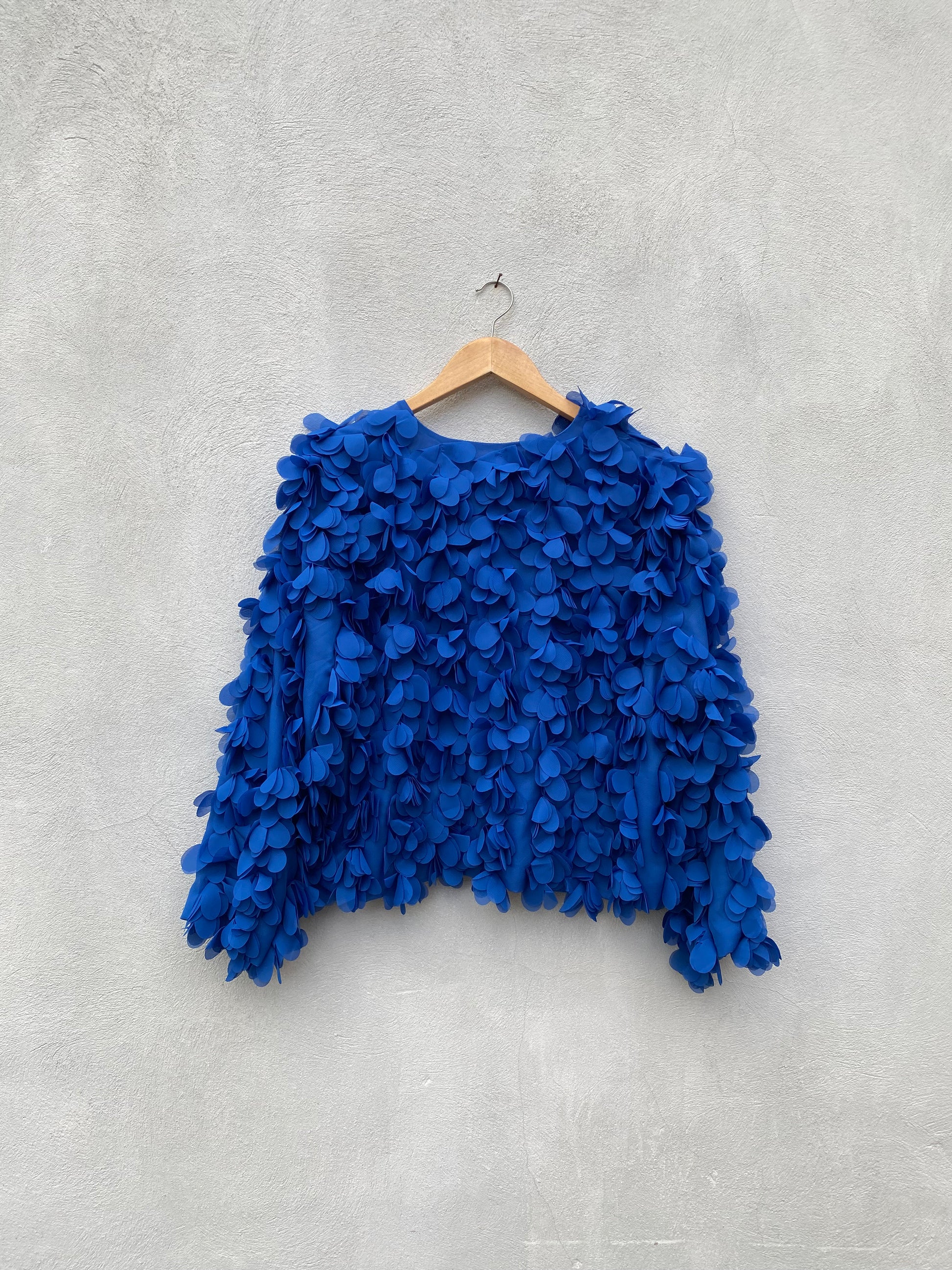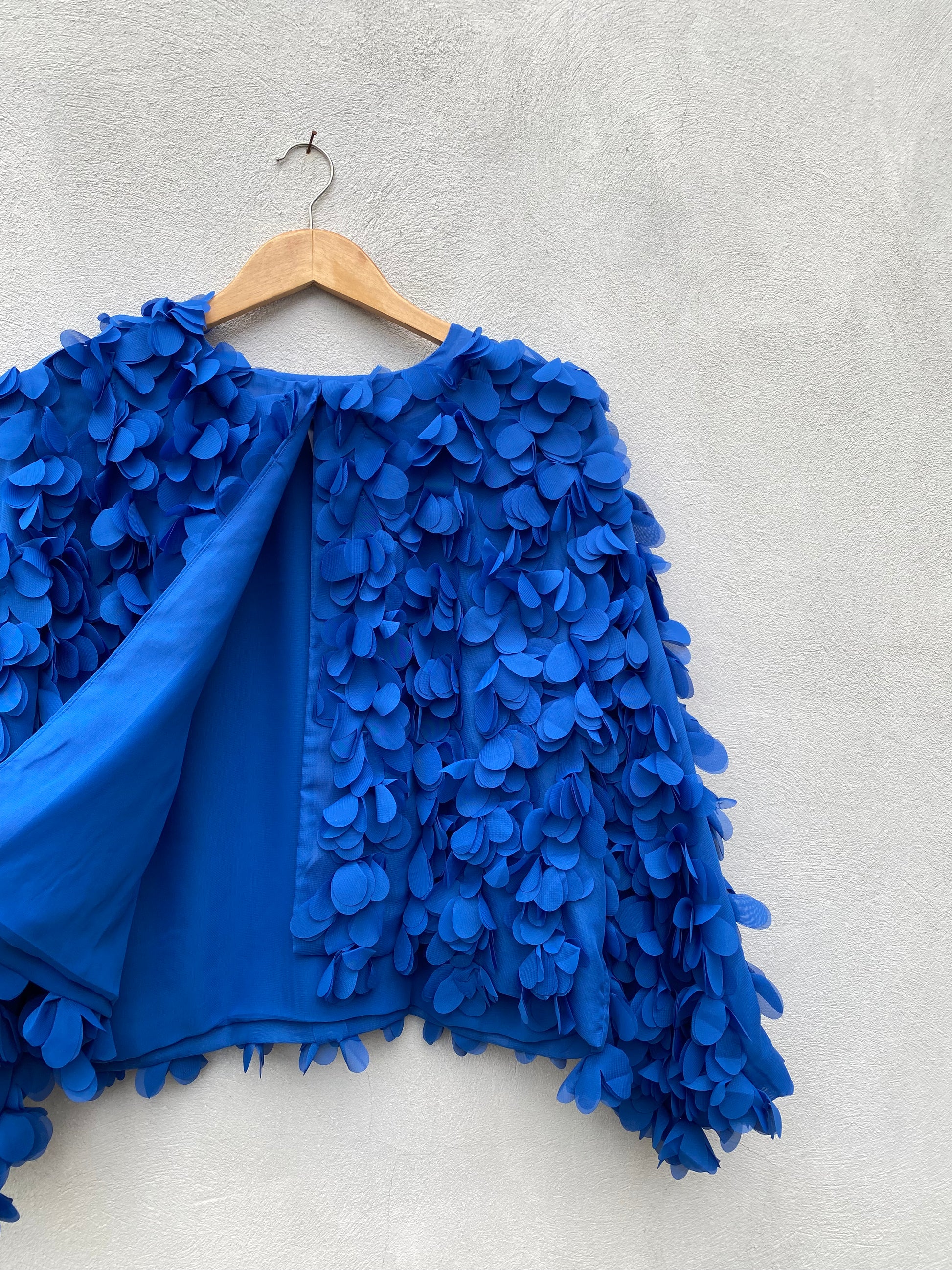 Not only is the colour amazing, but this gorgeous piece is the perfect way to add some creative flair to your wardrobe. Whether you want to lean into the vibe of this jacket & have fun with different colours & prints or use it as a fun pop layered over all black or white, this piece offers so much potential. Check out one of the photos from a fashion shoot where we layered it over a hot pink silky Zadig + Voltaire blouse, Zara snakeskin printed jeans & gold mules from Rosa Mosa.